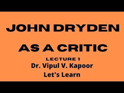 John Dryden (1631 - 1700), an English poet, dramatist and literary critic, is a versatile genius and is a volcano of English criticism from whom springs the valuable treatise 'The Essay of Dramatick Poesie'. (Originally published in 1668) This critical essay has become the most important monument of English criticism for the mass of readers. It is the unofficial manifesto to his critical creed and an important landmark in the history of literary criticism in England.